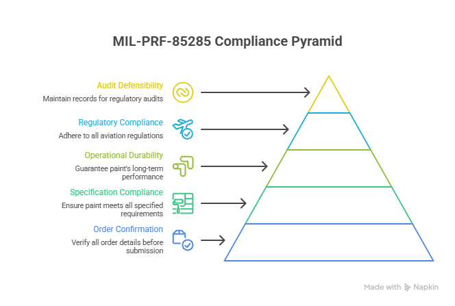 This guide and our entire series break down the specification from the buyer's perspective. If you are a contracting officer, maintenance leader, DLA supply specialist, or a paint facility manager at any level, this article will help you avoid ordering errors, understand the type class and grade differences in top coats, verify QPL eligibility, understand VOC and other environmental compliance, and source and procure MIL-PRF-85285 top coats through appropriate channels.